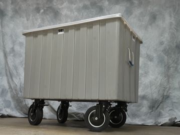Myton Induestries MTE-H5 film production hamper with 8" total lock solid rubber casters. Pictured with a plywood base. This is available with 4 swivel, 2 swivel/2 fixed casters, with 8" or 10" wheels. The larger 10" casters can be pneumatic or foam filled.